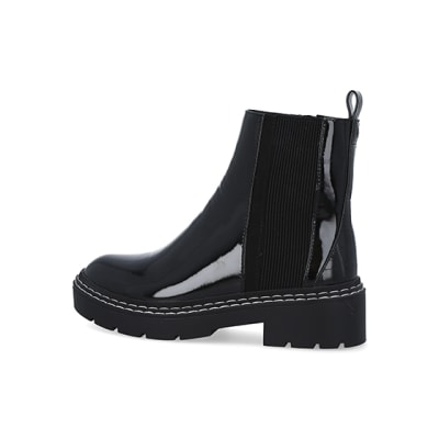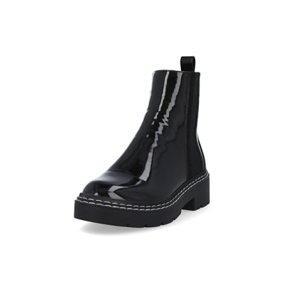 Black wide fit patent chelsea boots